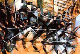 - glorified industrialization, urbanization, and technology along with the speed, noise and energy of urban life. more dynamic than Cubism in expressing experience. In Cubism, the artist records selected details of a subject as he moves around it, whereas in Futurism, the subject moves around the artist.